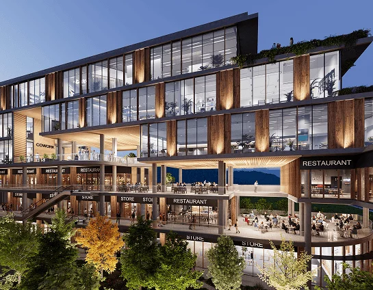 La experiencia inicia en una torre vibrante con oferta comercial y oficinas inspiradoras, y fluye a través de un corredor arbolado que invita a la pausa y al tránsito sereno.